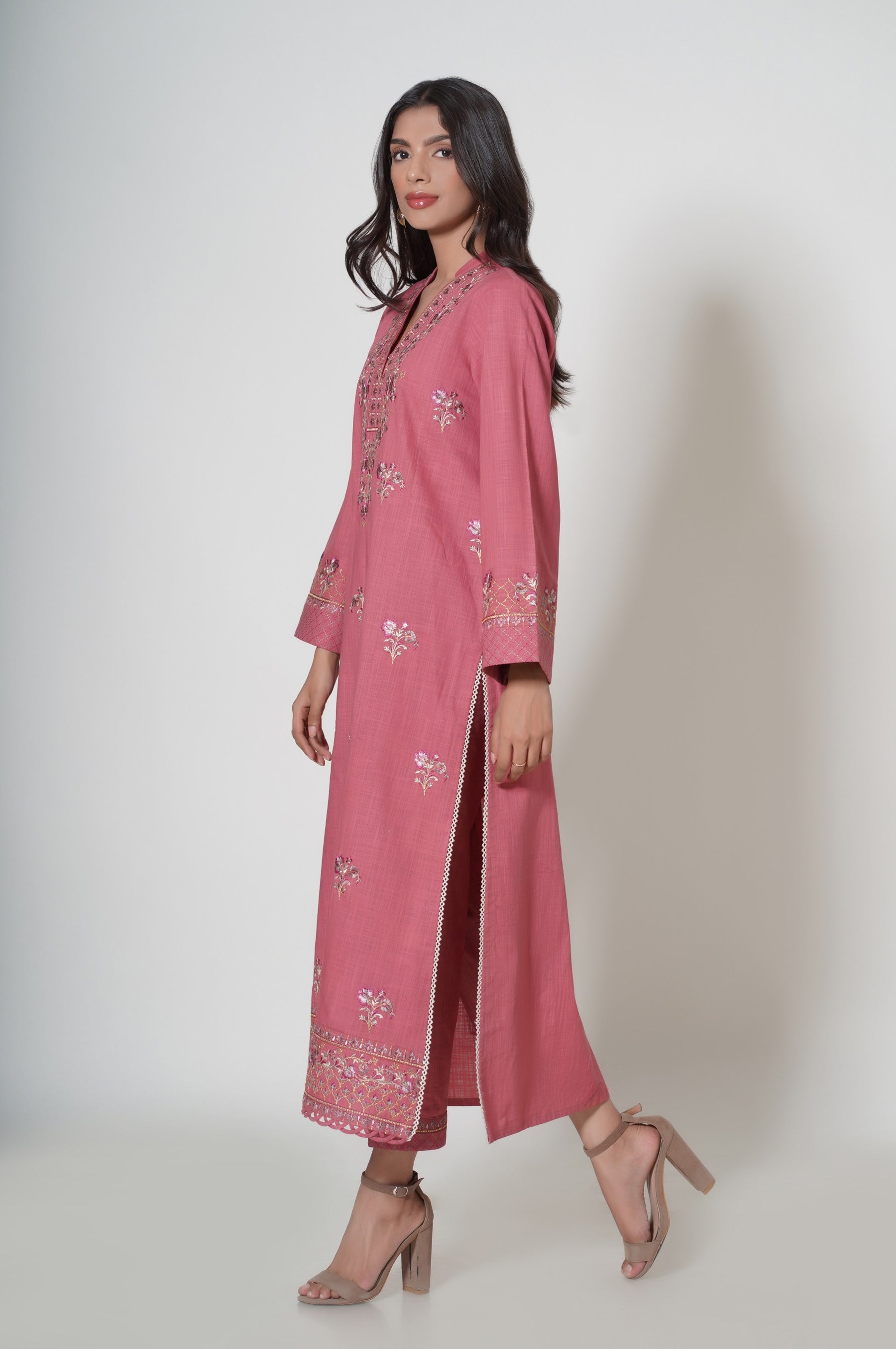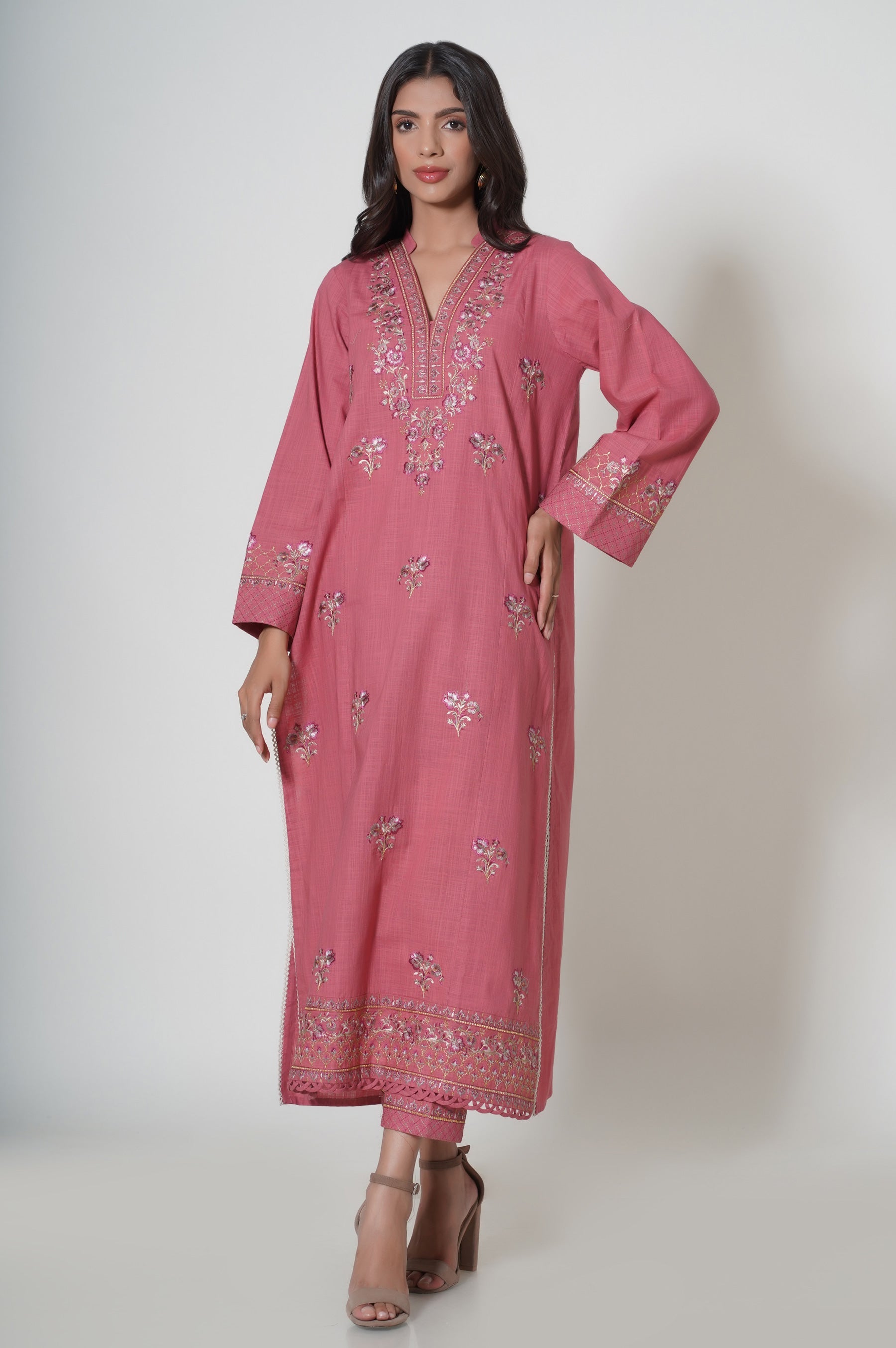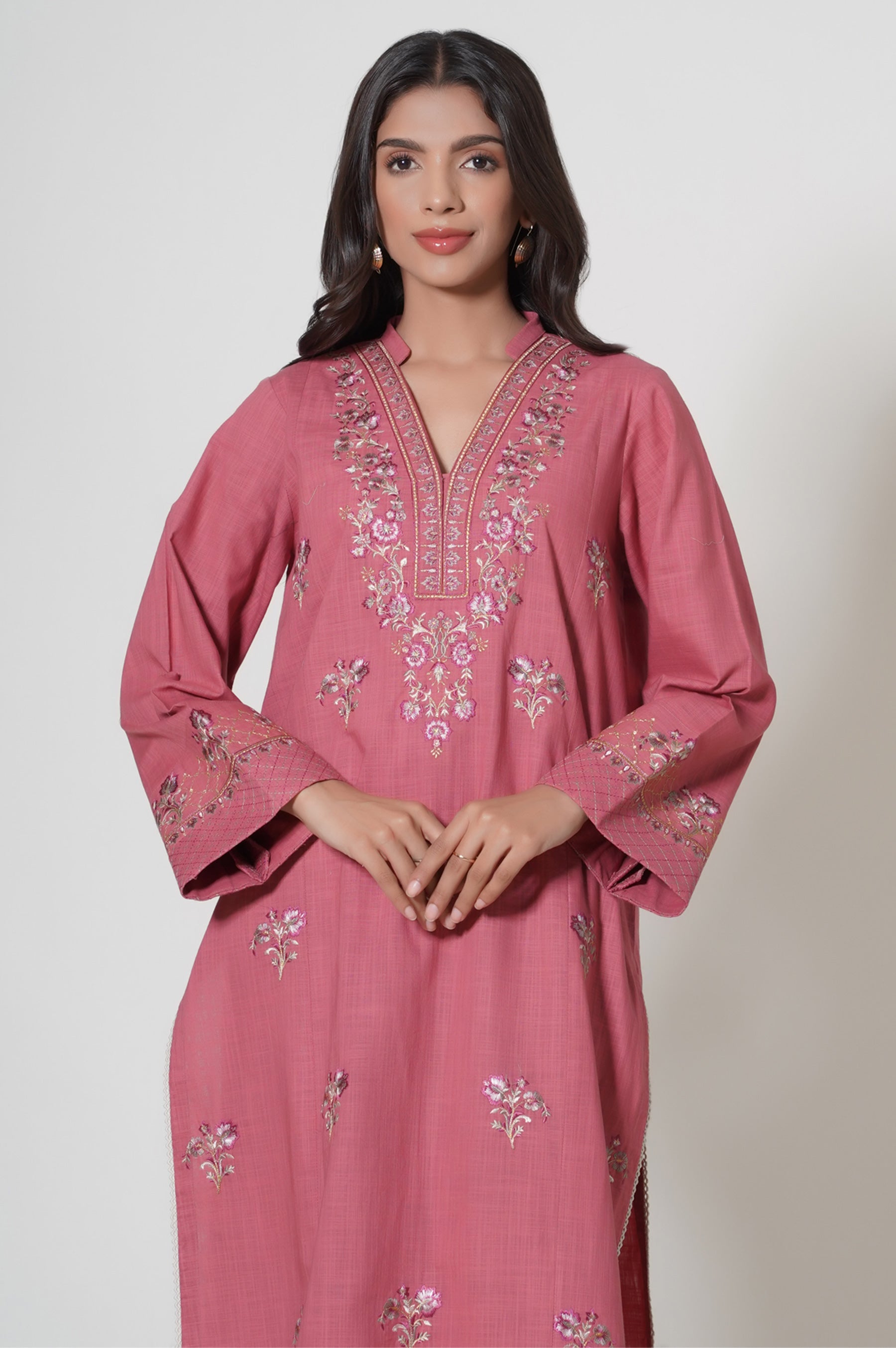 Add a feminine allure to your festive look in this unstitched 3 Piece cotton slub ensemble featuring a chintz floral pattern with multi colored embroidery on shirt and bottom. Paired with raw silk bottom and textured jacquard dupatta. This outfit will make you shine in the crowd.